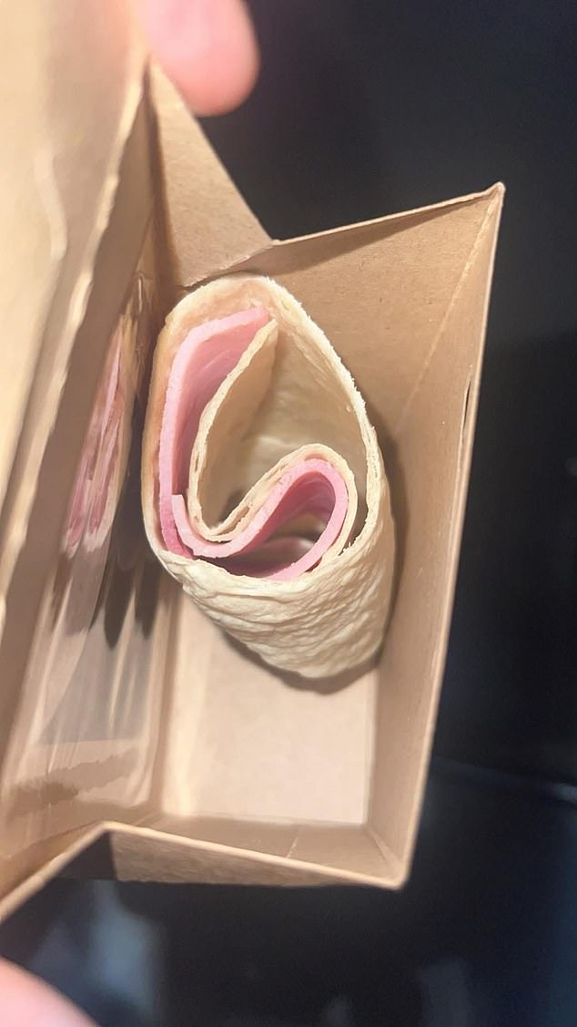 Um pai ficou furioso depois que seu filho compartilhou uma foto da merenda escolar – um embrulho com uma pequena fatia de presunto.