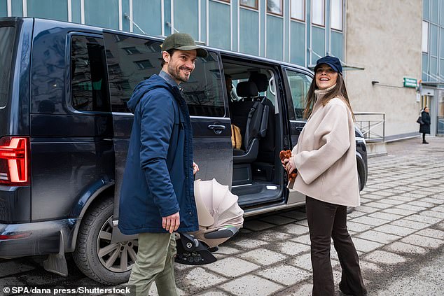 O casal, cuja filha nasceu na sexta -feira, foi retratada sorrindo amplamente enquanto saíam do Hospital Danderyds, perto de Estocolmo, com a filha no sábado.