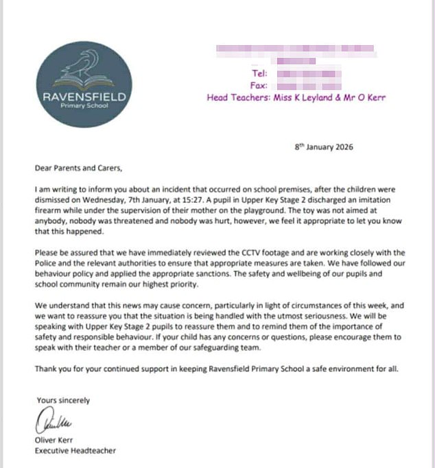 Numa carta enviada aos pais, à qual o Daily Mail teve acesso, estes foram informados de que no segundo dia de greve uma criança causou pânico no parque infantil quando “disparou uma imitação de arma de fogo sob a supervisão da mãe”.