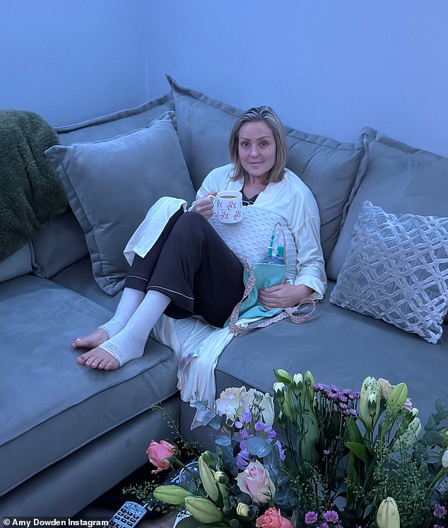 Amy Dowden voltou para casa depois de fazer uma segunda mastectomia a tempo de assistir Estritamente Venha dançar no sábado à noite.