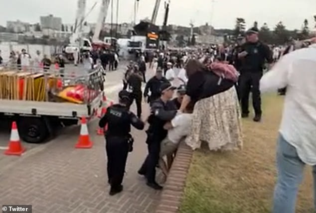 Um homem foi instruído a deixar Bondi Beach depois de correr em direção ao primeiro-ministro Anthony Albanese e gritar ‘sangue nas mãos’