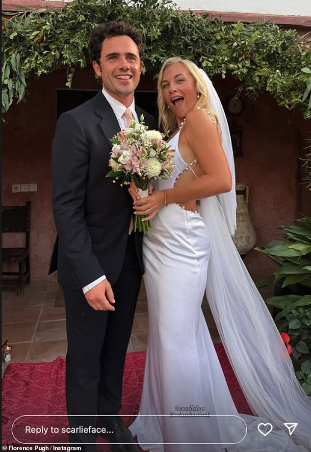 Florence jorrou ‘Eles foram pegados!’ Enquanto ela compartilhava clipes dos recém -casados sendo brindados pelos convidados após a cerimônia.