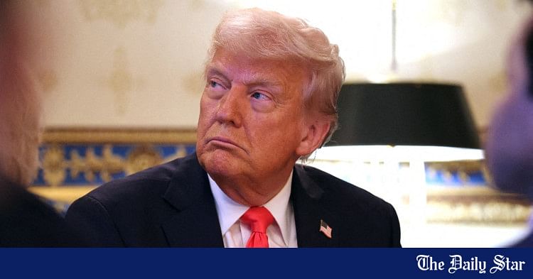 O presidente dos EUA, Donald Trump, observa antes de fazer comentários durante um serviço de oração de Páscoa e jantar na sala azul da Casa Branca em 16 de abril de 2025 em Washington, DC. Cristãos de todo o mundo celebrarão a Páscoa no domingo, 20 de abril. Foto: AFP