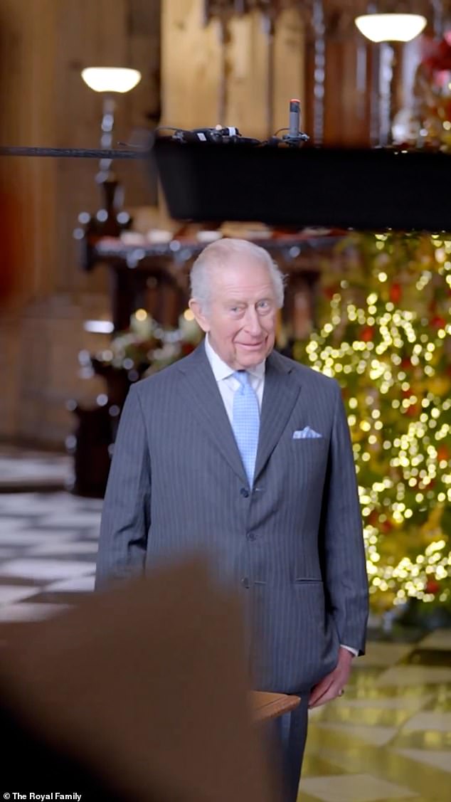 O vídeo de 12 segundos mostra os bastidores do Monarca preparando sua mensagem – com uma banda tocando, uma árvore de Natal gigante sendo decorada e uma equipe o orientando enquanto ele se prepara para ler um operador de autocue.