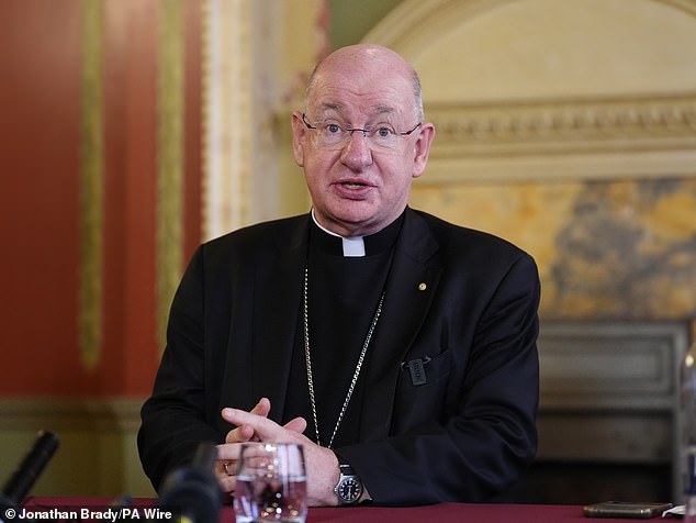 O Bispo Richard Moth (centro) substitui o Cardeal Vincent Nichols (à esquerda), que foi recentemente criticado num relatório sobre abusos sexuais dentro da Igreja Católica