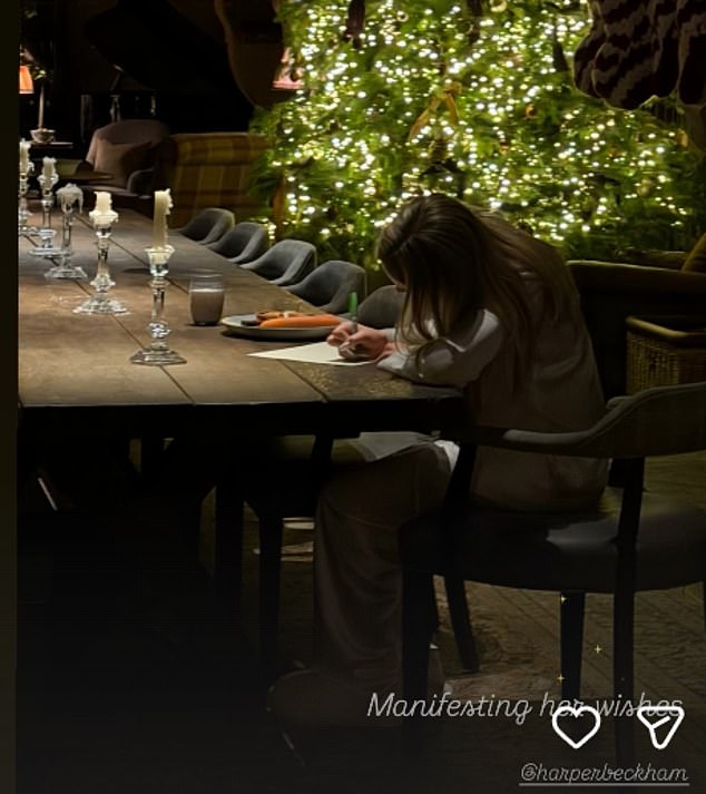 Sentado à mesa da cozinha da casa dos Beckham em Cotswold, Harper Beckham, de 14 anos, está ocupado colocando a caneta no papel. Victoria compartilhou com seus 33 milhões de seguidores no Instagram, sob a legenda: ‘Manifestando seus desejos’