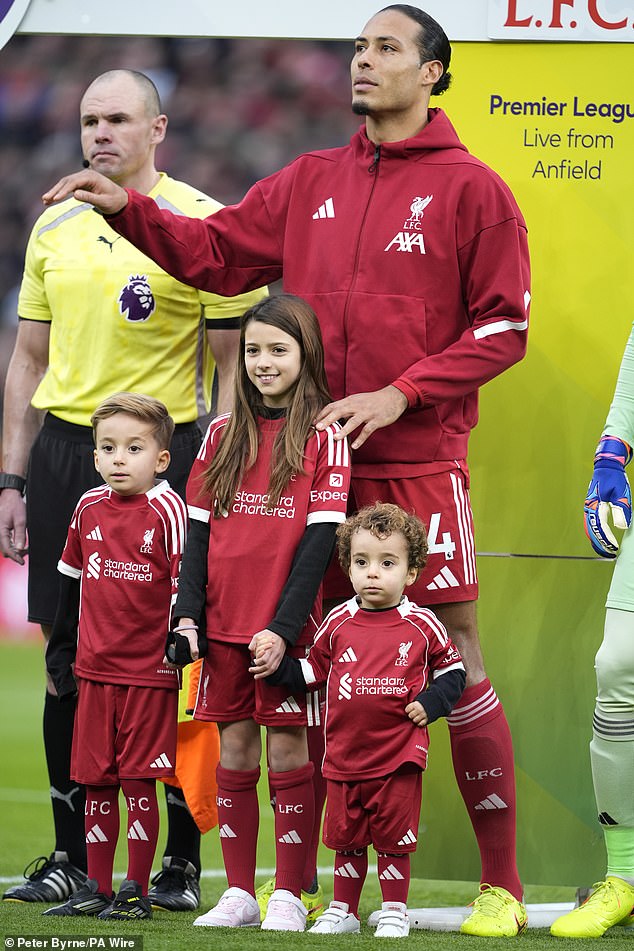 Os filhos de Diogo Jota – Dinis e Duarte – lideraram o Liverpool em Anfield ao lado do capitão Virgil van Dijk