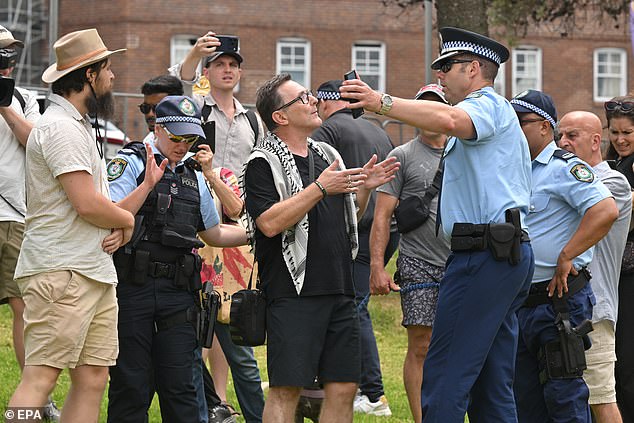 O homem, que usava um keffiyeh, foi questionado por moradores locais enquanto visitava a área em Sidneysubúrbios do leste no domingo.