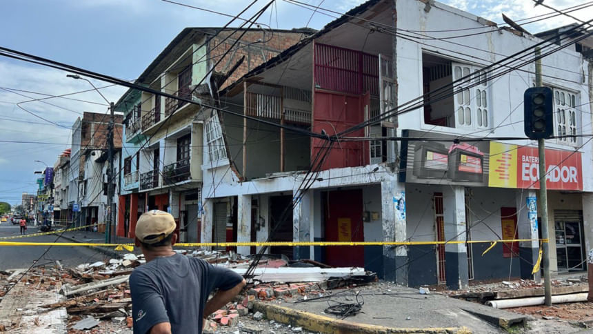 Um repórter da AFP em Esmeraldas testemunhou paredes caídas, fachadas que entraram em colapso em uma estrada em uma pilha de detritos e vários edifícios rachados.