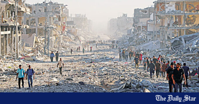 Quando o cessar-fogo começou no âmbito da primeira fase do acordo de paz, longas colunas de palestinianos, exaustos por dois anos de intensos bombardeamentos e pelo que a ONU alertou serem condições de fome, iniciaram uma caminhada desde a cidade de Khan Yunis, no sul, em direcção às suas casas destruídas mais a norte.