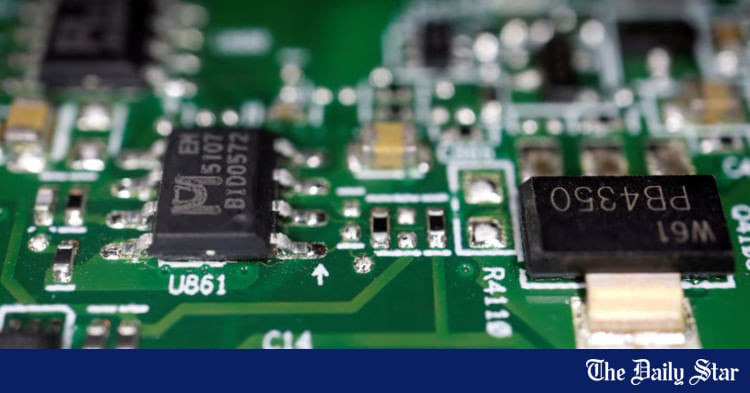 Chips semicondutores são vistos em uma placa de circuito impresso nesta ilustração tirada em 17 de fevereiro de 2023. REUTERS