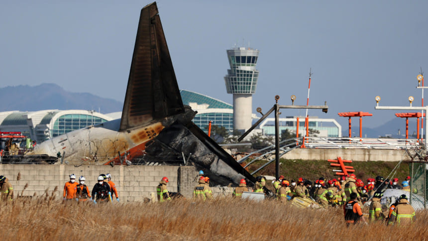 O Jeju Air 7C 2216 estava a caminho de pousar no Aeroporto Internacional de Muan após decolar de Bangkok, mas ultrapassou a pista devido a uma causa não confirmada. Ele colidiu com a cerca do perímetro e pegou fogo, causando uma explosão e incêndio.