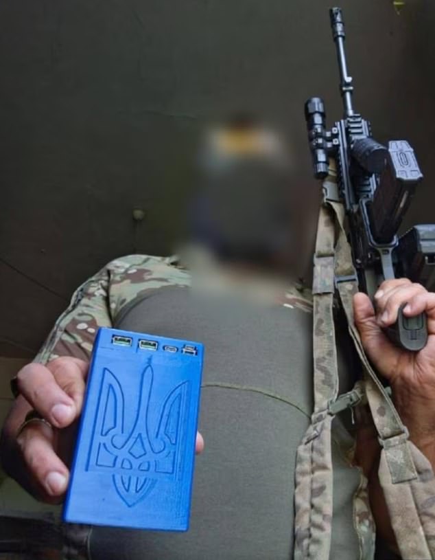 Assim que chegam à Ucrânia, as baterias são coladas em conchas de bancos de energia impressas em 3D, que podem então ser usadas pelos soldados para “quaisquer dispositivos alimentados por USB que existam”.