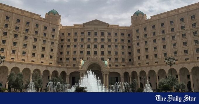 Uma foto tirada em 23 de março de 2025 mostra uma visão do Ritz-Carlton Hotel em Riad, onde as negociações estão em andamento com a mediação dos EUA para tentar alcançar um cessar-fogo na Guerra da Rússia na Ucrânia. Foto: AFP