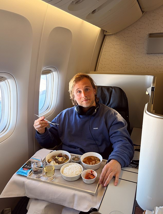 Felizmente – dada a duração de um voo de Londres a Seul – Jim acha que seu assento é “perfeitamente confortável”. Ele também reclina totalmente, estendendo-se até um comprimento total de 203 cm (seis pés e sete polegadas)