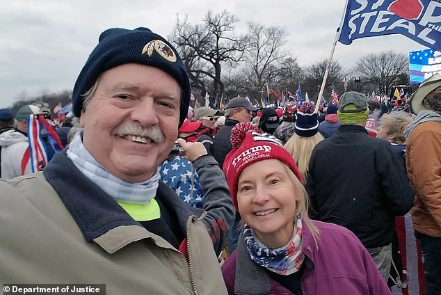 Thomas e Sharon Caldwell no que ele chama de viagem de ‘marido e mulher’ para ouvir o último discurso do presidente Trump em Washington DC em 6 de janeiro de 2021