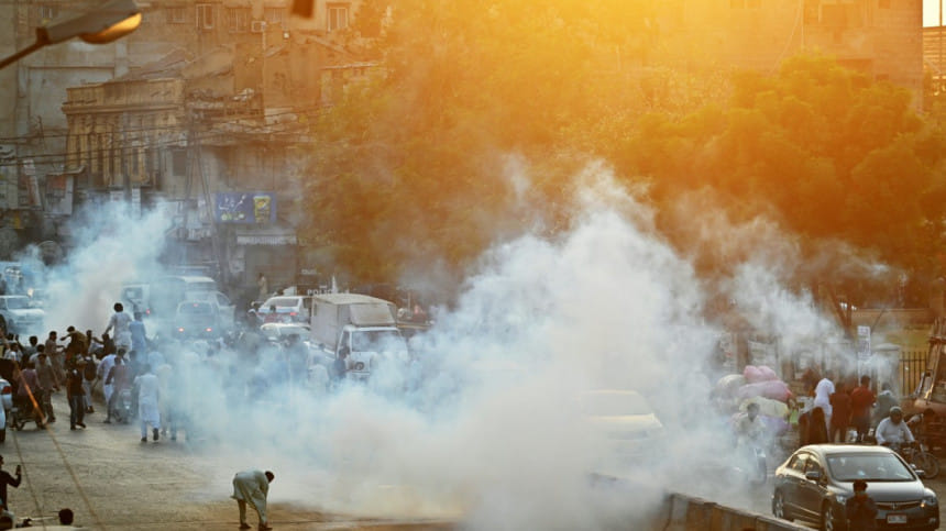 Apoiadores do partido paquistanês Tehreek-e-Insaf (PTI) protestam para exigir a libertação do ex-primeiro-ministro Imran Khan, em Karachi, em 18 de outubro de 2024. Foto: AFP