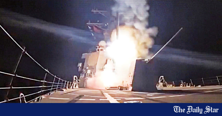Um vídeo publicado pelo Pentágono mostrou pelo menos um projétil lançado de um navio de guerra. Um oficial de defesa dos EUA disse que o ataque teve como alvo vários militantes em campos conhecidos do ISIS.