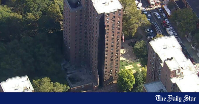 Imagens do helicóptero do WABC mostraram um canto do prédio de moradias públicas com sua parede parcialmente retirada. Os socorristas foram vistos escalando pilhas de tijolos para investigar.