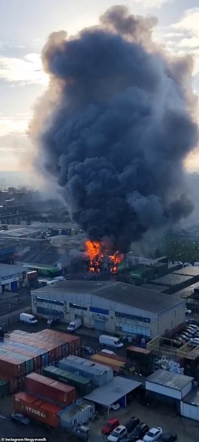 O enorme incêndio eclodiu em um prédio de dois andares composto por um armazém e um espaço comercial