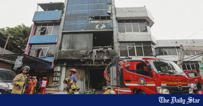 A polícia disse que o incêndio começou à tarde, quando uma bateria explodiu no primeiro andar de um prédio comercial de sete andares no centro de Jacarta, e o fogo se espalhou para os níveis superiores.