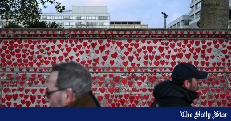 As pessoas passam pelo National Covid Memorial Wall, dedicado aos perdidos da Covid no Reino Unido, no centro de Londres, em 20 de novembro de 2025, antes da publicação de um novo relatório sobre a tomada de decisões do governo durante a pandemia. Foto: AFP