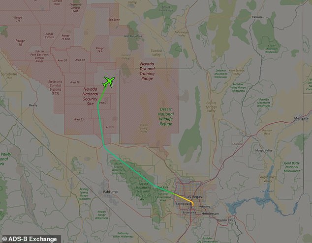 Dados de rastreamento de voo revelaram o caminho de um jato ultrassecreto da Força Aérea pousando na altamente classificada Área 51 no Nevada deserto na segunda-feira.