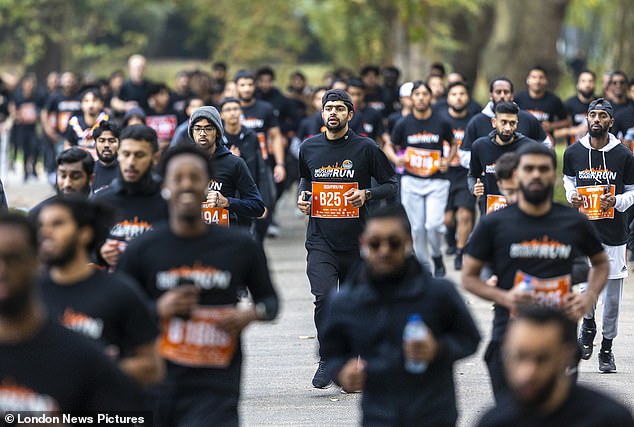 Corredores participam da Corrida de Caridade Muçulmana em Victoria Park, leste de Londres, no evento deste ano