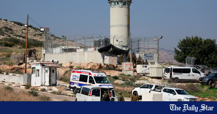 Membros das forças israelenses operam no local de um ataque de tiro no posto militar, em Jordan Valley, na Cisjânia Ocidental ocupada por Israel, em 4 de fevereiro de 2025. Reuters