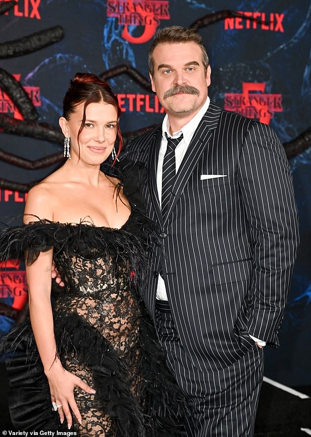 No mês passado, Brown insistiu que ela e Harbour estão se dando bem, depois de registrar uma reclamação bombástica de intimidação contra ele (retratado em novembro na festa pós-estreia de Stranger Things)