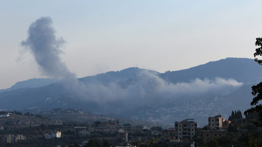 Fumaça sai do local de um ataque israelense que teve como alvo a vila de Kfar Kila, no sul do Líbano, em 9 de setembro de 2024. Foto: AFP