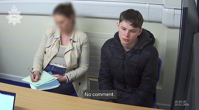 As filmagens mostram o adolescente sem emoção responder repetidamente ‘sem comentários’ enquanto era interrogado por dois policiais em 10 de novembro do ano passado.