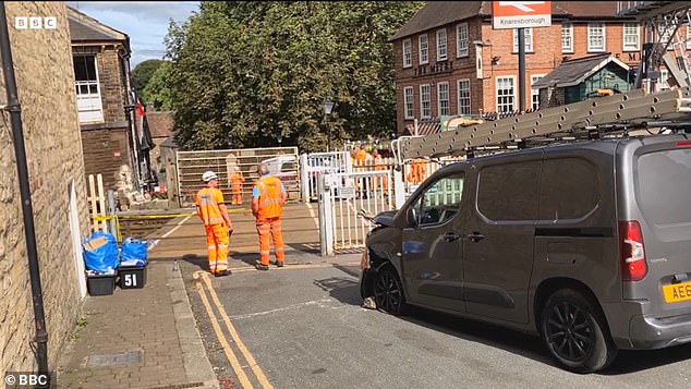 Um motorista de van que tentou culpar seu cachorro pelo acidente admitiu dirigir sem o devido cuidado e atenção (na foto: o veículo após colidir com barreiras de passagem de nível)