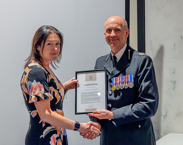 Ela recebeu o elogio do oficial chefe em setembro por seu corajoso trabalho voluntário com a equipe de Busca e Resgate de Wiltshire, depois de recuperar o corpo de uma pessoa desaparecida no rio Avon em junho.