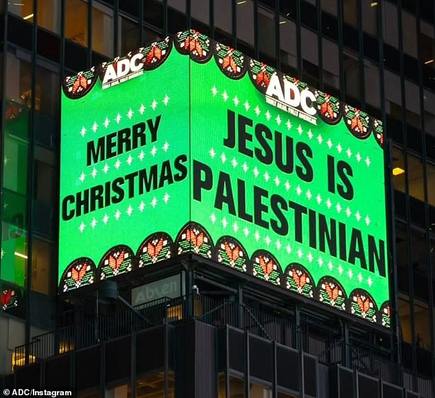 O Comitê Árabe-Americano Antidiscriminação (ADC) lançou uma polêmica campanha em outdoors no popular ponto turístico da cidade de Nova York antes do Natal, em uma tentativa de aumentar a conscientização sobre a guerra de Israel em Gaza