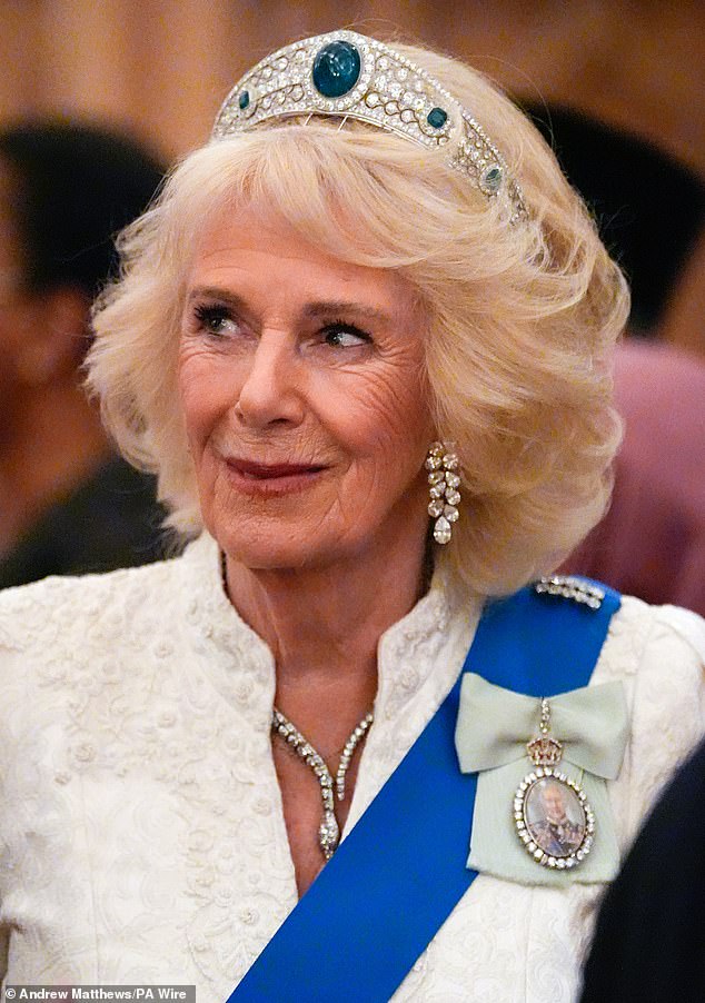 Rainha Camila participou da recepção do Corpo Diplomático em Castelo de Windsor ontem à noite, usando uma tiara brilhante que imediatamente chamou a atenção – e não apenas por causa das deslumbrantes esmeraldas inseridas.
