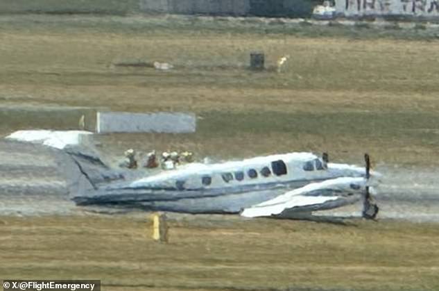 As equipes de emergência foram para a pista para ajudar aqueles a bordo do avião, que é operado pelo operador de fretamento privado de Belfast, Woodgate Aviation.