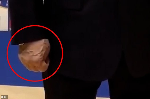 Ao falar em uma coletiva de imprensa, ele agarrou o púlpito à sua frente enquanto suas pernas tremiam, aparentemente incontrolavelmente.