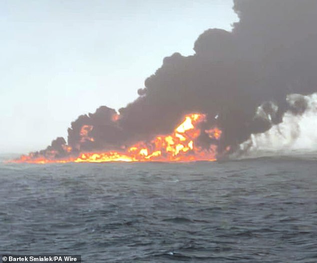 A Embaixada da Rússia em Londres disse: ‘Em 14 de março, surgiram informações adicionais sobre os cidadãos russos da tripulação da embarcação de Solong, pilotando a bandeira portuguesa, que colidiu com o tanque imaculado Stena voando na bandeira dos EUA no Mar do Norte em 10 de março.