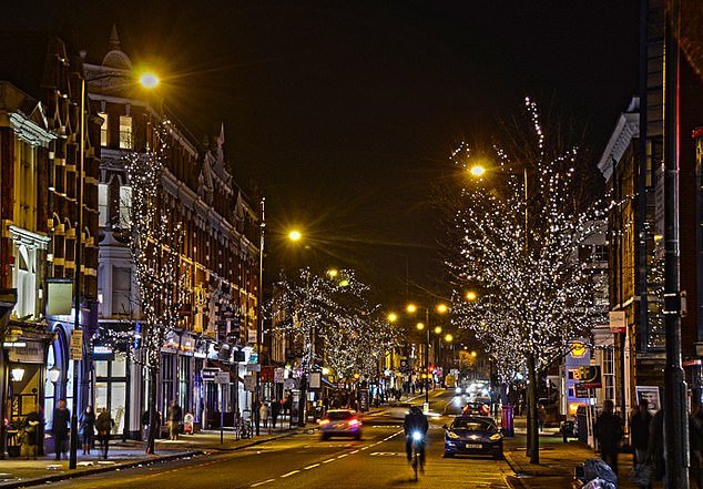 O Conselho de Islington foi acusado de ‘roubar o Natal’ depois de cortar suas luzes festivas em uma aparente tentativa de economizar dinheiro (foto: luzes em uma rua principal no ano passado)