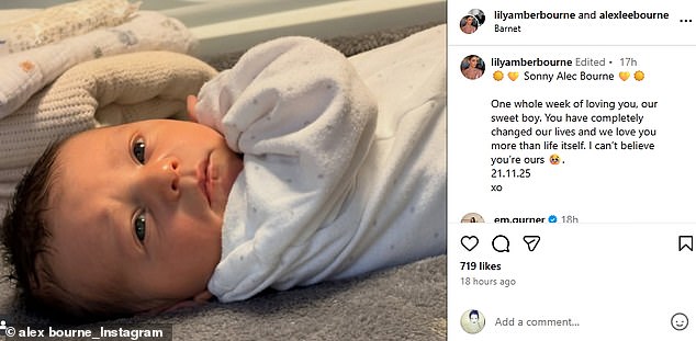Os amigos e familiares do casal comentaram rapidamente, com um deles escrevendo: ‘Notícias maravilhosas e muitos parabéns a todos vocês’, enquanto outro acrescentou: ‘Bem-vindo ao mundo, Sonny!’