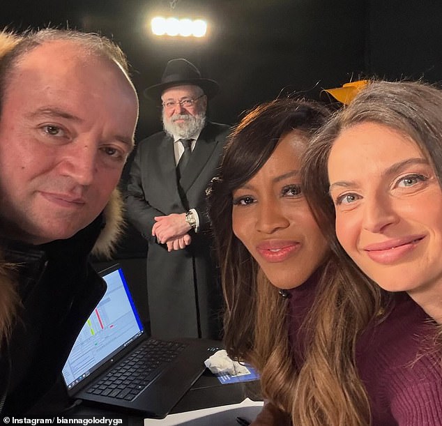 Ahmed Al Ahmed é retratado (lr) com o Rabino Yehoram Ulman, sogro da vítima de Bondi, Rabino Eli Schlanger, e os âncoras da CNN Zain Asher e Bianna Golodryga