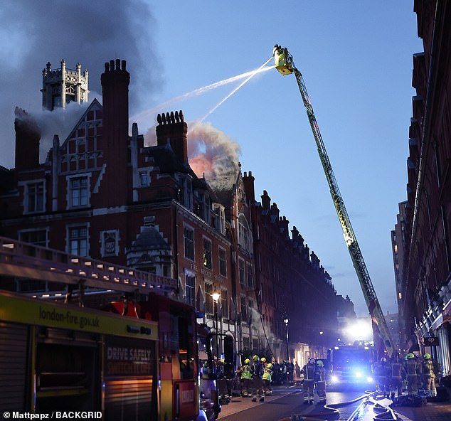 A Brigada de Bombeiros de Londres disse: ‘Vinte carros de bombeiros e cerca de 125 bombeiros foram chamados para um incêndio em um hotel na Chiltern Street, em Marylebone.