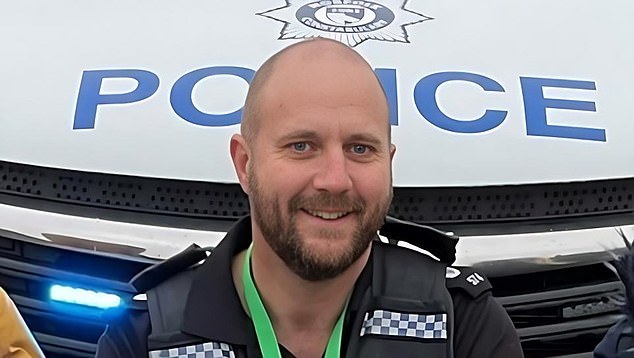 Howarth, retratado com um aluno do 6º ano da Escola Primária Católica St Mary e St Peter em Gorleston, onde ele discutiu o tráfico de drogas e a pressão dos colegas nas fronteiras do condado com crianças em 2023, foi suspenso do serviço