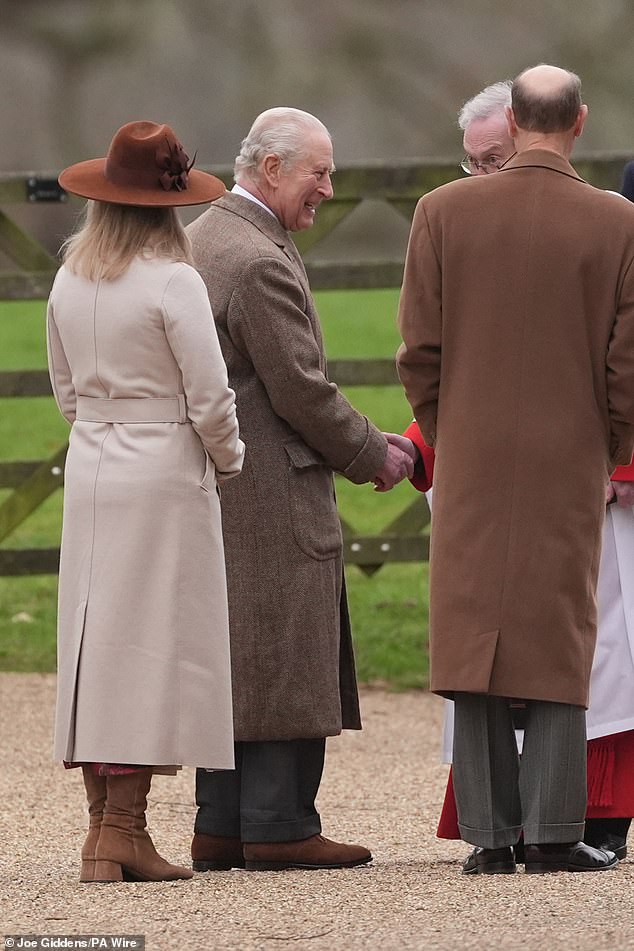 O Rei Charles lidera enquanto a realeza comparece ao culto dominical em Sandringham hoje