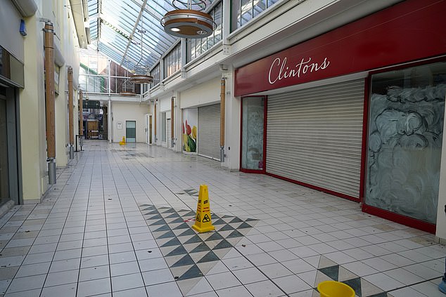 Na foto: O interior do Riverside Shopping Center onde, além de uma cafeteria e uma única Home Bargains, não sobrou nada