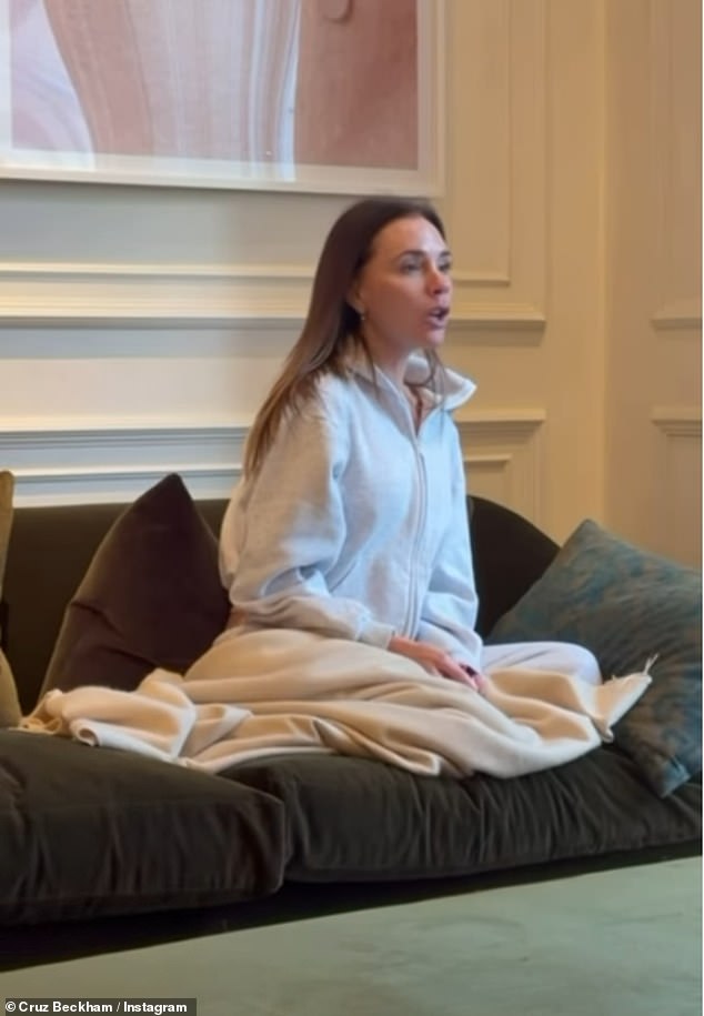 O vídeo, postado na página oficial de Cruz no Instagram, mostra Victoria vestida casualmente sentada no sofá de sua mansão em Londres.