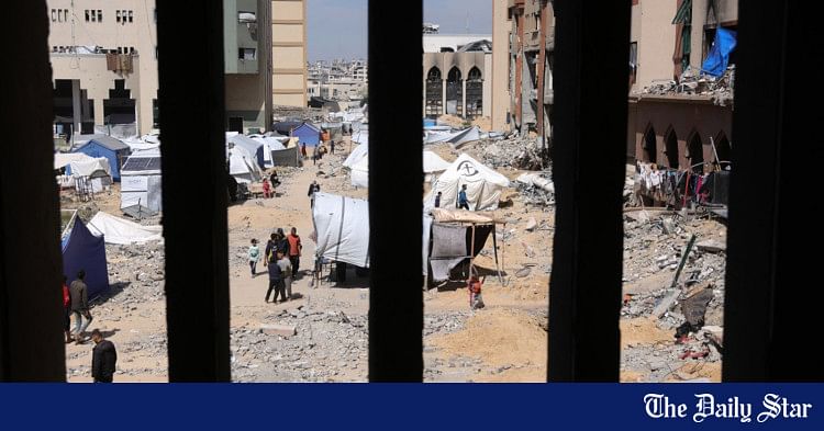 Uma vista parcial mostra as tendas que a habitação deslocou os palestinos no campus da Universidade Islâmica em Gaza City em 16 de abril de 2025. Foto: AFP
