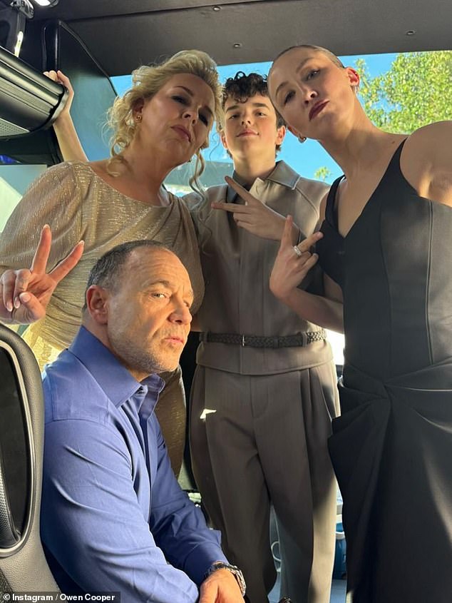 Seu orgulhoso pai, Andy, sorriu de orgulho ao ver seu filho adolescente receber o prêmio, enquanto seu co-estrela Stephen, que interpretou seu pai na tela, também ficou cheio de alegria por ele.