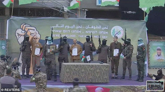 Em troca, Israel libertará 183 prisioneiros palestinos, alguns condenados por envolvimento em ataques que mataram dezenas de pessoas e incluem 18 sentenças de prisão perpétua e 111 detidas em Gaza durante a guerra, segundo o Hamas.